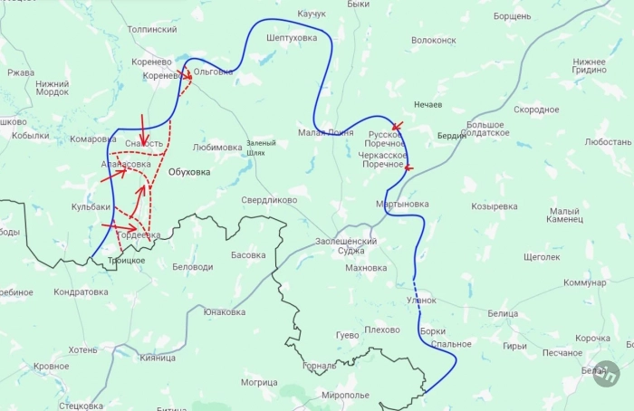 Основные бои сегодня следует ожидать в районе Обуховки-Любимовки. Причем, значение последней (вернее хутора Зеленый Шлях, восточнее) переоценить трудно. Это центр коммуникаций противника всей северо-курской его группировки, утеря которого станет для ВСУ настоящей катастрофой.