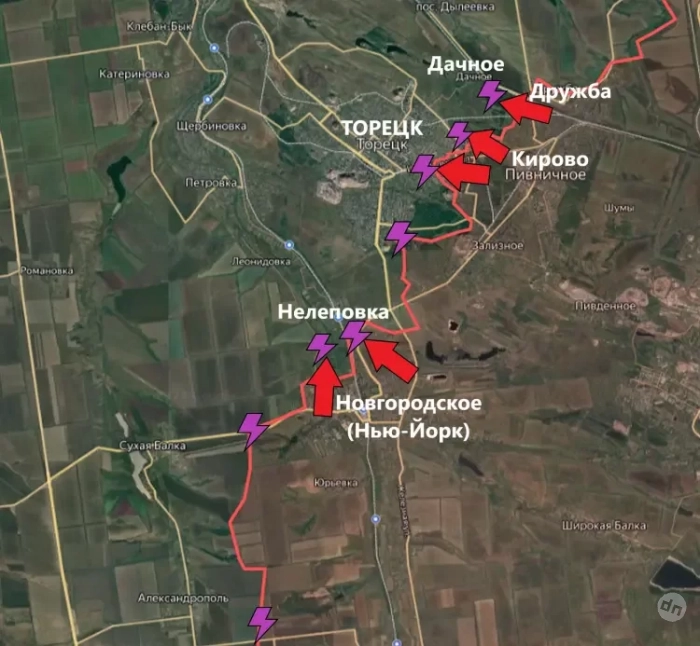 Подразделения ВС РФ продолжают продвижение из Дружбы в сторону Дачного. Пока что до этого населённого пункта наши бойцы не добрались - бои идут на подступах. Враг яростно обороняет свои позиции, так как продвижение на этом участке позволит нашим бойцам подобраться к Торецку с севера.