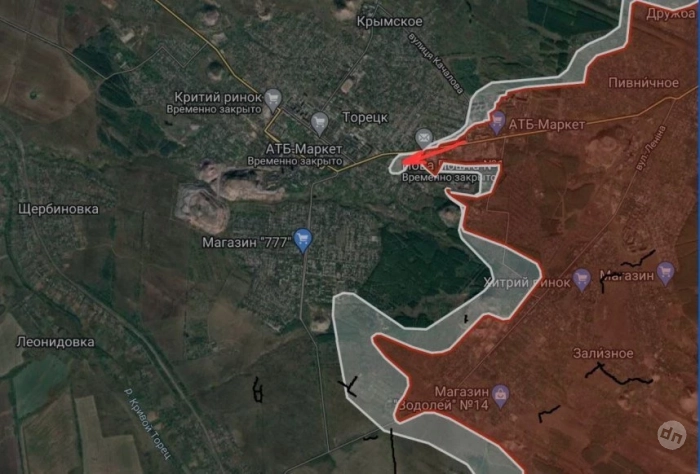 На Торецком направлении в Торецке ВС РФ продвинулись вдоль ул. Центральной, давят по направлению к центру города.
