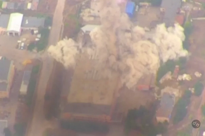 На опубликованных в интернете кадрах видно, как здание поражает ракета, после этого поднимаются клубы дыма. Также на видео показано, что завод частично обрушился.