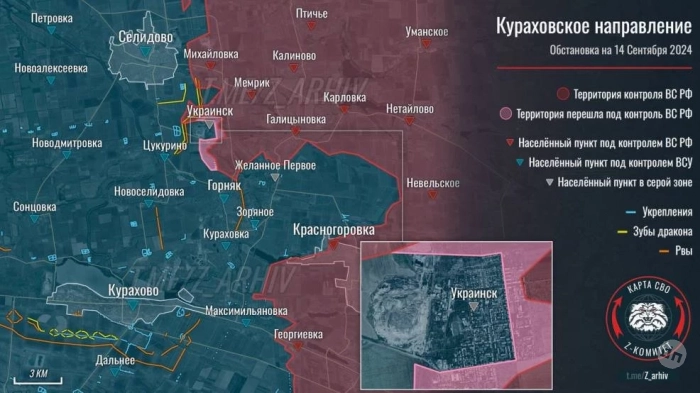 Свежая карта боевых действий на Украине от 15.09.2024. ВС РФ идут вперед. Обстановка на фронтах СВО на сегодня
