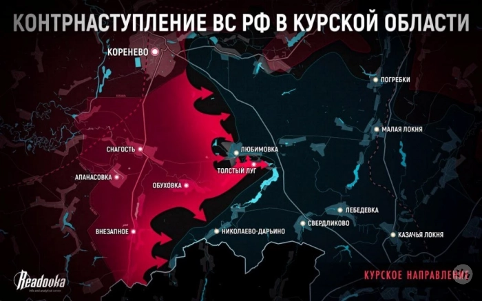 На этой неделе главным событием, которого все долго ждали, стало начало нашего контрнаступления в Курской области. Рывком за два дня вернув под русский флаг десять населенных пунктов в Кореневском районе, наши продолжают идти по легко читающемуся, но разумному, а главное, действенному плану. Это условно растащить преграду, занятую ВСУ, в виде хутора Покровского, Толстого Луга и Любимовки, встать крепко на шоссе Суджа - Рыльск и методично заставлять врага ужиматься в Судже, откуда и выдавить восвояси.