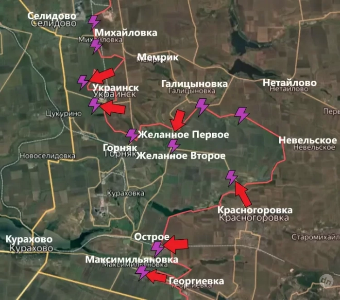 Обновлённая карта боевых действий на Украине по данным на 13:00 мск сегодня, 16.09.2024