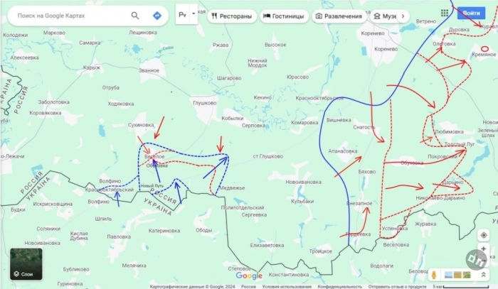 Судя по конфигурации своих резервов, именно Суджу противник намерен держать до конца. А вот остальными своими «завоеваниями» здесь, в случае новых наших ударов он вполне готов пожертвовать.