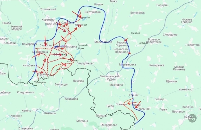 И также наши части атакую южнее Суджи в районе Плёхово и Черкасской Конопельке. Пока без особого продвижения.