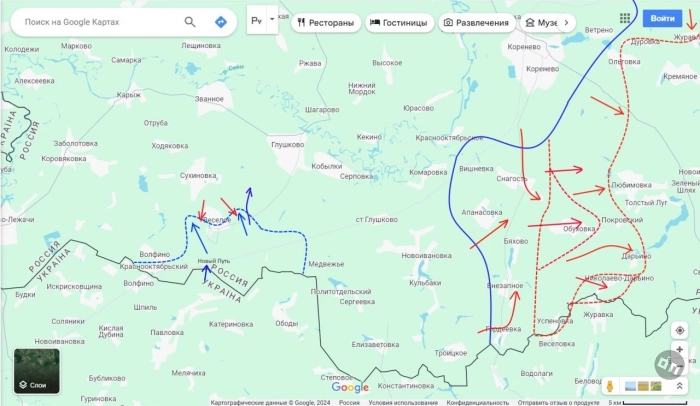 В своем персональном блоге Юрий Подоляка сообщил последние новости о ситуации в Курской области, а именно акцентировал внимание на том, что сегодня происходит вокруг населённого пункта Веселёное: