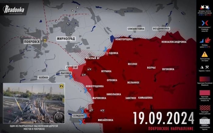 Артиллерия русской армии обрушила сразу 3 автомобильных моста через ж/д пути в Покровске. Последним из них стал путепровод трассы М-30 на западе города. После чего ВС РФ совершили огневой налет на станцию Удачная и расположенные рядом с ней склады с боеприпасами, ГСМ и прочим военным имуществом. Такие удары по тылам ВСУ говорят о подготовке нашей армией штурма городской агломерации, информирует Telegram-канал Readovka.
