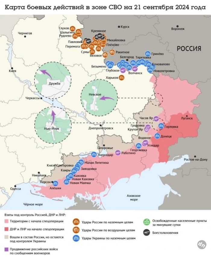 Обзор ситуации на фронтах специальной военной операции (СВО) на Украине, последние новости от 21 сентября 2024 года, а также свежая карта боевых действий - в материале сайта N4k.