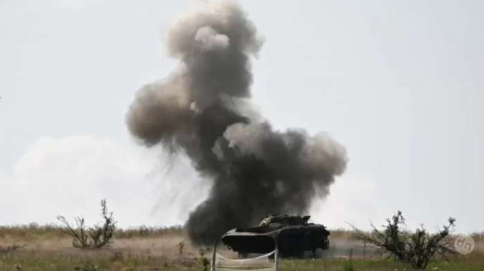 После удара над местом поднялся столб дыма, достигающий высоты нескольких километров. Уточняется, что удар был нанесен с применением реактивной артиллерии.