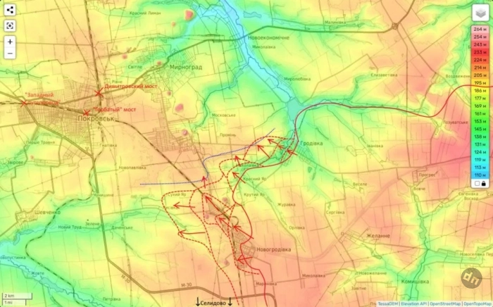 На Покровском направлении накануне наши войска весь день штурмовали линию обороны противника на высотах перед Мирноградом и к вечеру сумели закрепиться на них северо-западнее Гродовки.
