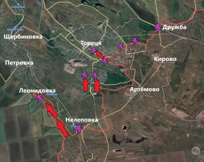 В Торецке наши бойцы продвигаются в центре города и вчера взяли под свой контроль здание администрации. Противник отступает в северо-западную часть города, но держать оборону ему здесь будет сложнее, ведь в этом районе преимущественно частный сектор, а не многоэтажная застройка.
