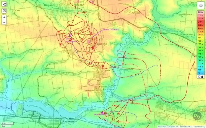 Новая карта боев на Селидово-Кураховском направлении