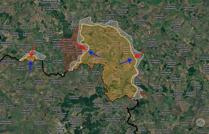 На Суджанском участке отмечаются боестолкновения западнее Дьяковки, в районе Русского Поречного, Мартыновки и Борок, передает Telegram-канал "БелВПО".