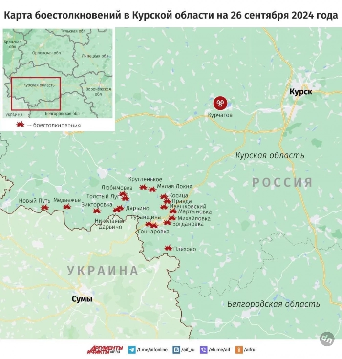 Карта боевых действий в Курской области: данные на сегодня, 26 сентября