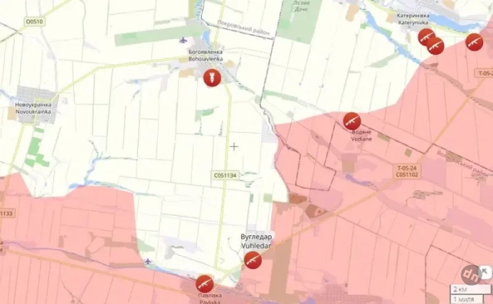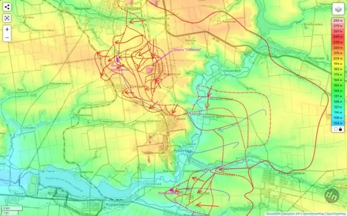 Карта боевых действий на Селидово-Кураховском направлении