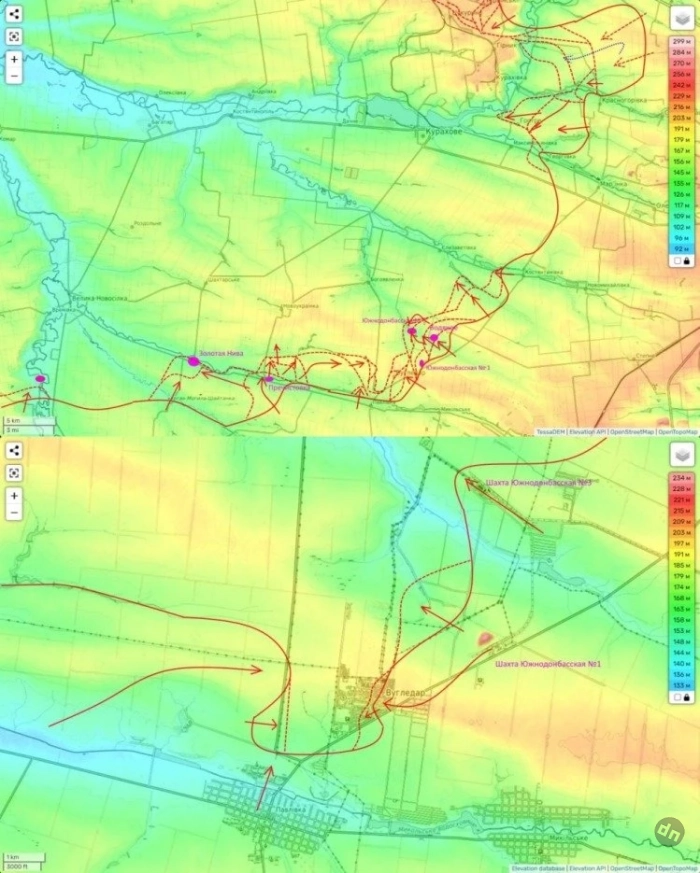 На Селидово-Кураховском направлении основные бои здесь происходят в районе Цукурино. Именно сюда противник бросает резервы, пытаясь не дать нашим частям прорвать эту свою последнюю удобную линию обороны, но пусть и с трудом но наши штурмовики ее прогрызают.