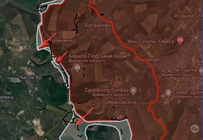 На ЧасовЯрском направлении российские части расширили контроль территории севернее Часов Яра, продвинулись в районе Калиновки и Григоровки. На южной окраине урочища Кринички южнее Часового Яра имеются тактические успехи на глубину до 1.9 км.