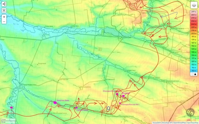 На Покровском направлении все более и более очевиден спад нашей активности. Судя по всему, главной задачей наступательной операции по прорыву внешнего контура обороны ВСУ южнее Мирнограда, было введение противника в заблуждение по поводу направления нашего главного удара, который все очевиднее смещается в район Селидово.