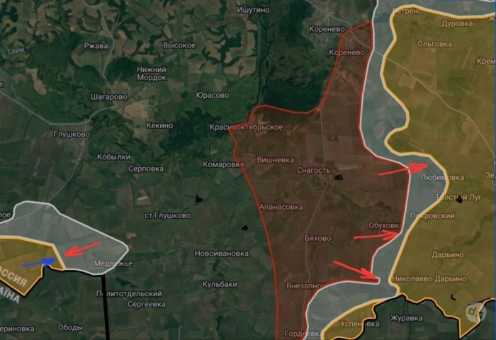 В Курской области в Глушковском районе продолжаются боестолкновения в районе Весёлое и Медвежье. На Кореневском участке ВС РФ расширили контроль территории в районе Обуховки и Николаево-Дарьино. отмечаются встречные бои в районе Любимовки. На Суджанском участке локальные боестолкновения отмечены по линии Мартыновка-Черкасская Конопелька.