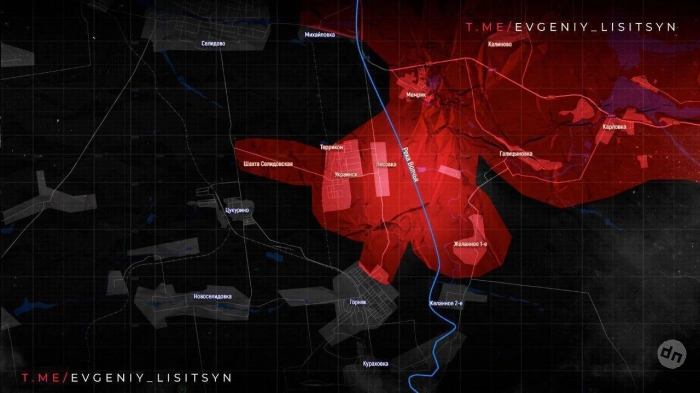 На Покровском направлении идут бои в восточной части Николаевки. Наши войска развивают успех и продолжают окружать Селидово. По последним данным, ВС РФ перерезали ж/д ветку севернее Цукурино и уже штурмуют его восточные окраины.