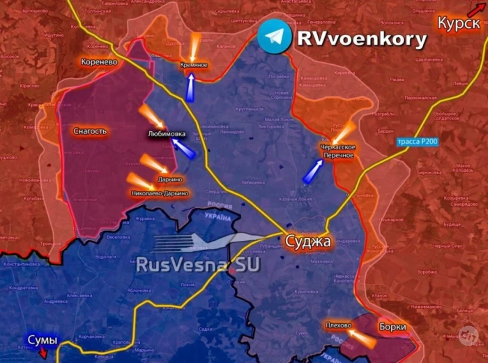 Армия Россия продолжает контратаки для вытеснения противника в районах н.п. Дарьино, Николаево-Дарьино и Плехово, выбивая оккупантов.