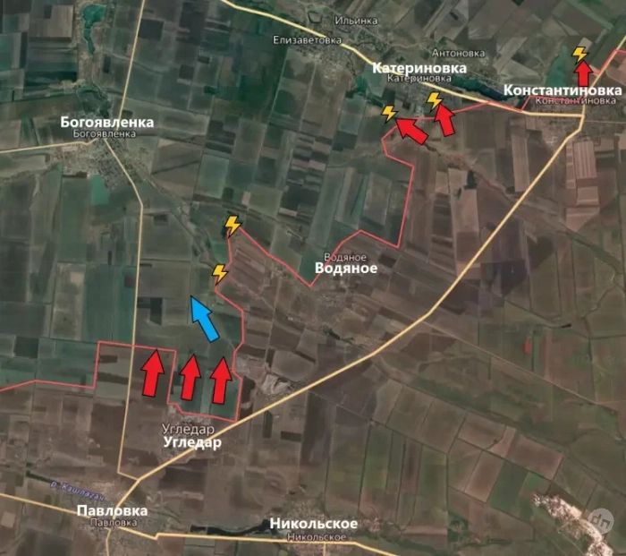 Угледарский фронт гремит. Западнее Угледара ВС РФ двигаются к Новоукраинке вдоль балки Берестовой, что севернее р.Кашлагач. Восточнее Угледара наши продвинулись ~ на 1,5 км по дороге на Богоявленку. Пройдя по берегу балки Солененькая, ВС РФ закрепились на фермах на юге Катериновки, зашли на восточную окраину. Идут бои в Максимильяновке. ВС РФ наступают от Островского к Курахово, а зайдя в Островское, наши перерезали один из путей снабжения кураховского гарнизона ВСУ. Единственный маршрут ВСУ остался через Ильинку - одна из ближайших целей ВС РФ. Угледарский и Покровский участок сливаются, сообщает Олег Царев в своем Telegram-канале.