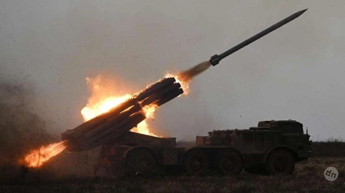 Расчет реактивной системы залпового огня (РСЗО) «Ураган» уничтожил склад боекомплекта и пункт дислокации Вооруженных сил Украины (ВСУ) на северском направлении в Донбассе.