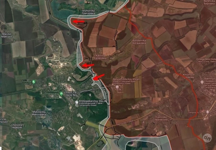 На ЧасовЯрском направлении ВС РФ имеют тактические успехи западнее Григоровки и Калиновки, продвинулись в западном направлении в мкр. «Октябрьский».