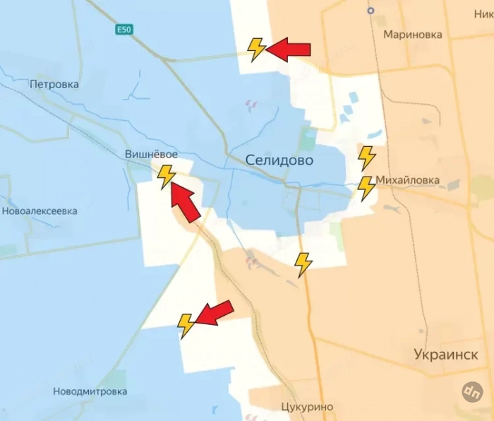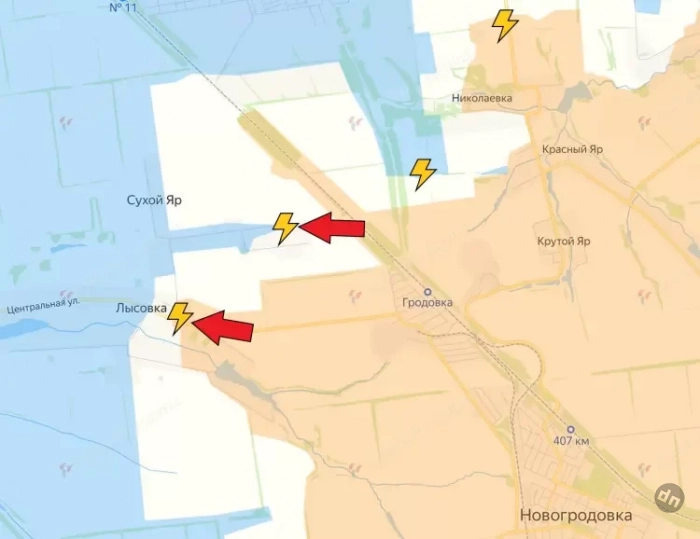 По данным авторов канала, северные границы котла идут по линии Лысовка - Сухой Яр и трассы Е-50. Одновременно с юга ВС РФ удалось достичь Вишневого.