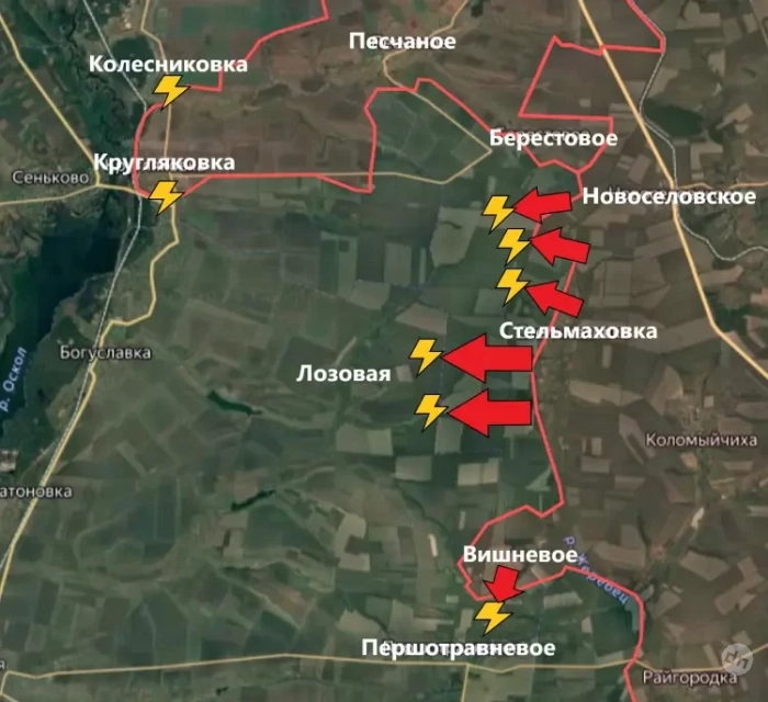 На Купянском направлении в районе Кругляковки и Колесниковки продолжаются встречные бои. За последние сутки информации о продвижении ВС РФ на этом участке не поступало.