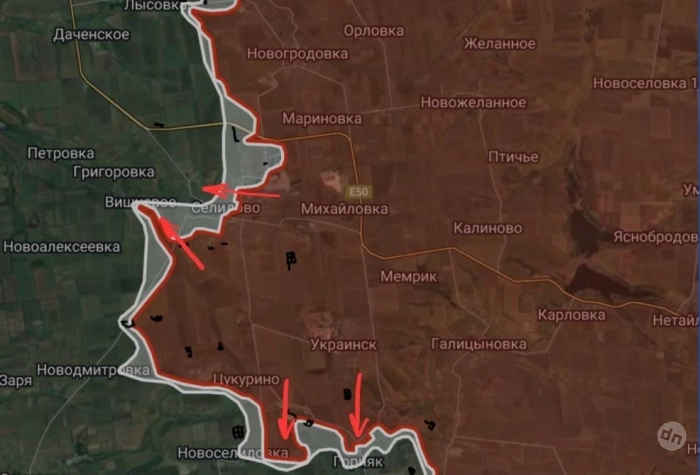 «Для чего брали Селидово и Горняк? Для того чтобы скатать в рулон ещё больший участок фронта... Главной целью наступления по-прежнему остаётся Покровск. Но важность задачи не означает смены методов, которые хорошо работают. Судя по действиям армии России, можно предположить, что вместо окружения отдельных городов могут попробовать практиковать окружение целых районов/карманов», - говорится в материале.