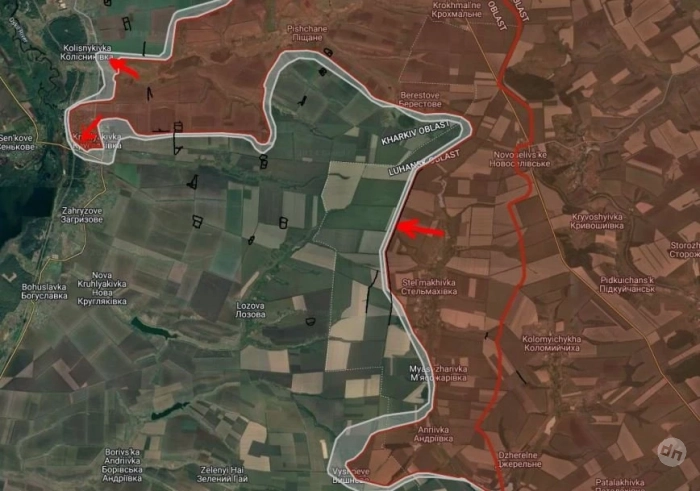 На Купянско-Лиманском направлении ВС РФ имеют тактические успехи на восточной окраине Колесниковки севернее р. Песчаная. В Кругляковке российские войска расширили контроль территории и продвинулись вдоль ул. Сосновая на глубину до 200 м., давят в южном направлении. Западнее Стельмаховки ВС РФ продвинулись вдоль на участке шириной до 4.87 км на глубину до 1.7 км.