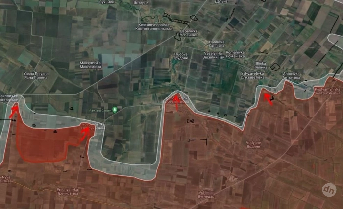 На Времевском направлении в районе Левадного и балки Грушевая российские войска имеют тактические успехи, продвинулись на участке шириной до 9.58 км на глубину до 2.06 км.