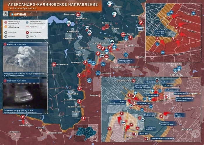 На Александро-Калиновском направлении российские войска постепенно продвигаются в городской застройке в центре Дзержинска.
