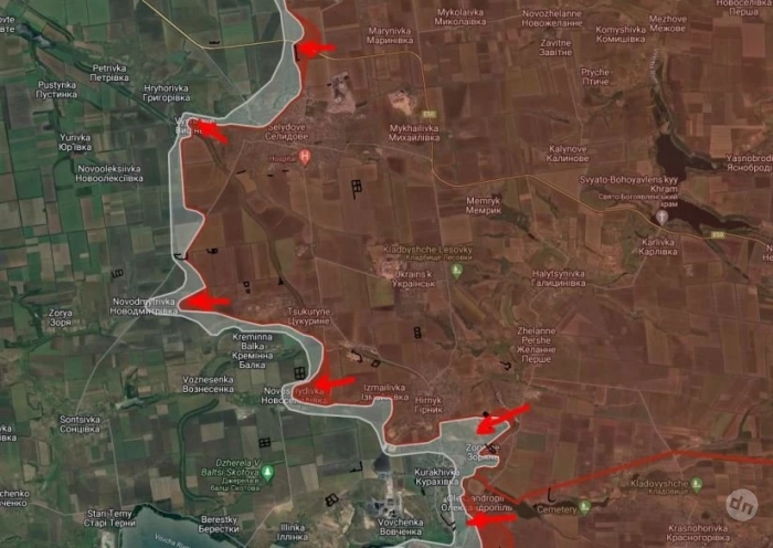 На Покровском направлении ВС РФ продолжают зачистку западной и северо-западной окраин Селидово. В районе Вишнёвого российские войска продвинулись на участке шириной до 2.8 км на глубину до 1.45 км. Западнее Цукурино ВС РФ продвинулись на глубину до 1.2 км. в направлении Новодмитровки, сообщает Telegram-канал "БелВПО". Российские войска имеют тактические успехи в Новоселидовке, продвинулись на глубину до 1.25 км. Под контроль ВС РФ перешел Горняк. Продолжаются боестолкновения в районе Зоряного и Кураховки. Поссийские войска продвинулись в районе Острого и Александрополя в направлении террикона и шахты №1/2 «Острый».