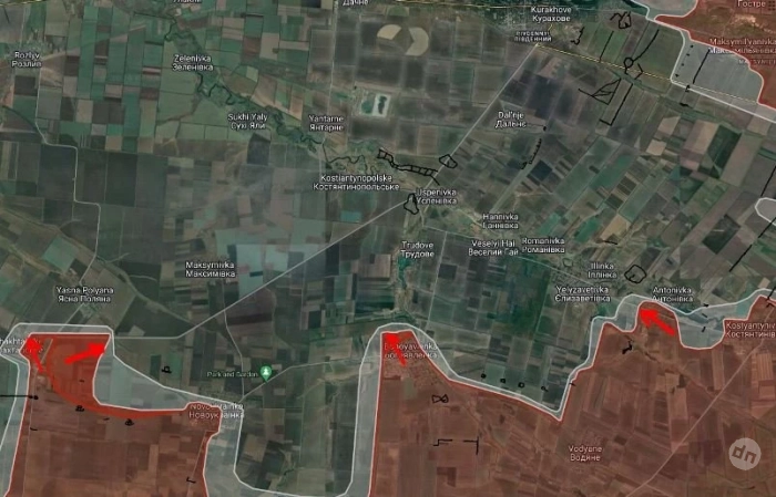 На Кураховско-Константинопольском направлении российские войска расширили контроль территории в центральной части Катериновки, продолжают давить севернее и южнее пруда в направлении Елизаветовки. Севернее Богоявленки ВС РФ продвинулись на глубину до 450 м. Под контроль российских войск перешла юго-западная часть Новоукраинки. В Шахтёрском продолжаются бои за центр населённого пункта. ВС РФ расширили контроль территории от южной фермы до Новоукраинки на участке шириной до 6 км на глубину до 3.1 км. В районе Ясной Поляны российские войска ведут штурмовые действия в направлении балки Наливач, продвинулись на глубину до 2.16 км.