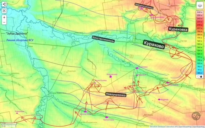 Сейчас наши бойцы воюют на окраинах Новоалексеевки и Новодмитровки. Отсюда они смогут двигаться к упомянутому Константинополю через Андреевку. Враг же огрызается, выводя часть своей группировки из Кураховки, но не для того, чтобы отвести в безопасные места, а чтобы кинуть своих боевиков на особо опасные места прорыва, фактически на смерть.