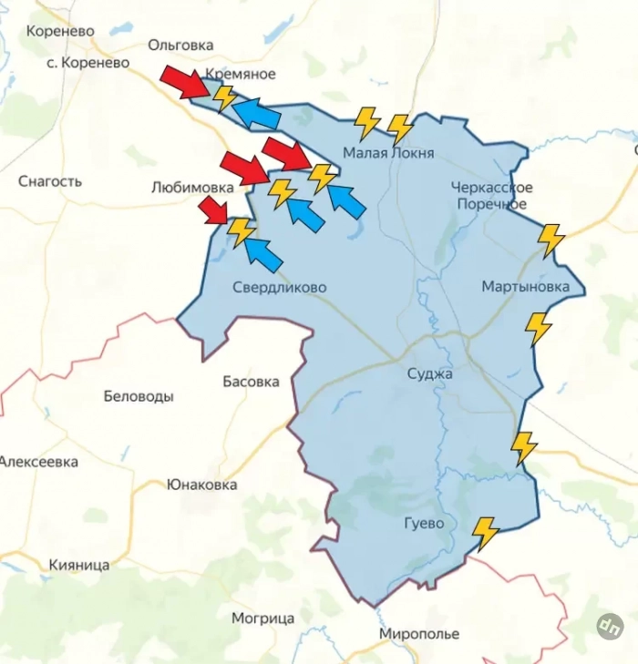 Успех здесь у сторон переменный, но по итогу серьёзного продвижения нет ни у кого. Продолжаются локальные бои у Малой Локни, а также на востоке Суджанского района.