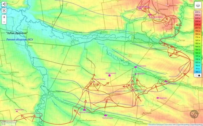 На днях ВСУ вынуждены были отойти с позиций севернее Ильинки, что позволило российским силам усилить огневой контроль над последней трассой к Кураховке. В городе продолжаются ожесточенные бои, и противник постепенно отступает, понимая, что удержать его становится невозможно.