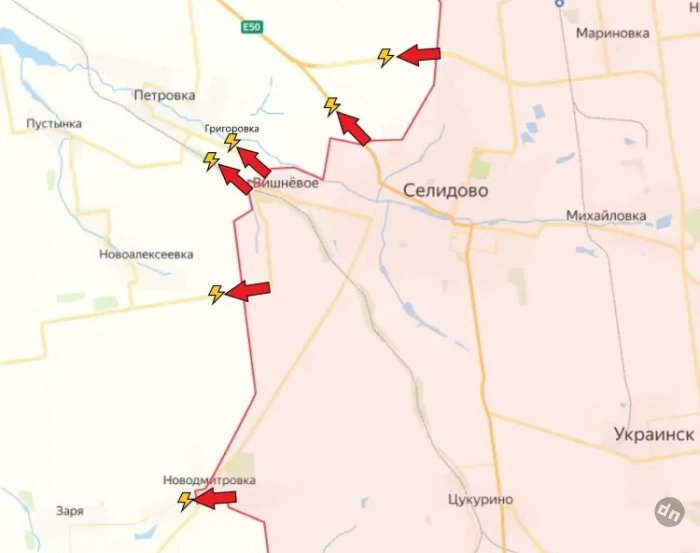 Также российские войска продвинулись севернее Ясной Поляны, подойдя к крайне важному на этом направлении селу Разлив. По позициям ВСУ в черте этого села следуют прилёты артиллерии, идёт работа по уничтожению огневых позиций ВСУ. Разлив важен тем, что севернее от него проходит ключевая для кураховского гарнизона противника трасса со стороны Запорожской области. Это основной маршрут снабжения украинских войск в Курахово. Бои идут и в восточной части города, где противник пытается отстоять железнодорожную станцию Роя.