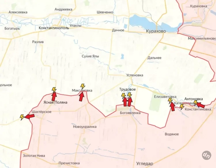 На Константинопольском направлении российские войска имеют тактические успехи северо-западнее и севернее Богоявленки, давят в направлении Трудового. С РФ ведут зачистку Максимовки. Под контроль ВС РФ перешло Шахтёрское, боестолкновения продолжаются западнее и южнее населённого пункта. В районе Золотой Нивы российские войска давят в западном и северо-западном направлениях.