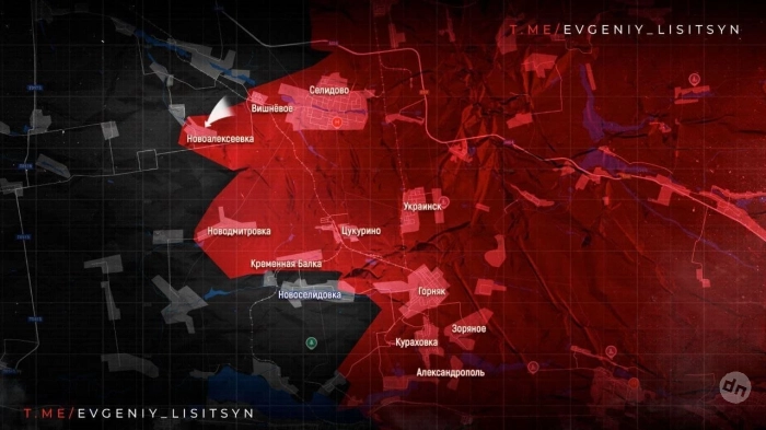 На Покровском направлении совершили успешный рывок со стороны Новодмитровки к Солнцевке и вышли на окраины села. По данным с мест, российским частям удается пробиться к ж/д полотну на холме между Вознесенкой и Берестками. К западу от Селидово российские военные подняли флаг над Новоалексеевкой.