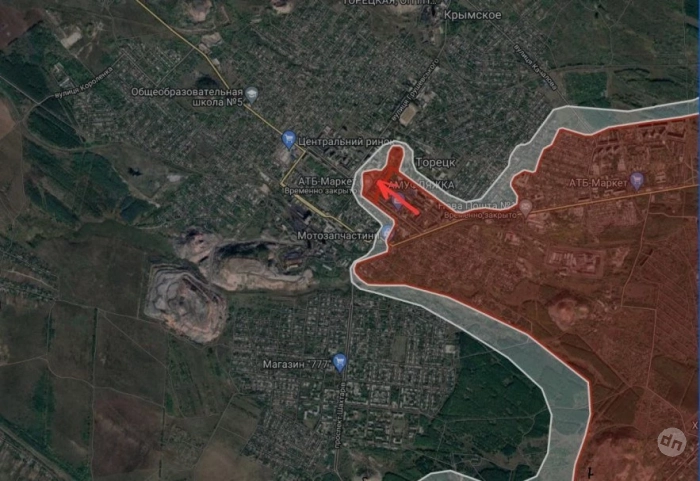 На Торецком направлении в Торецке ВС РФ имеют тактические успехи в центральной части города.