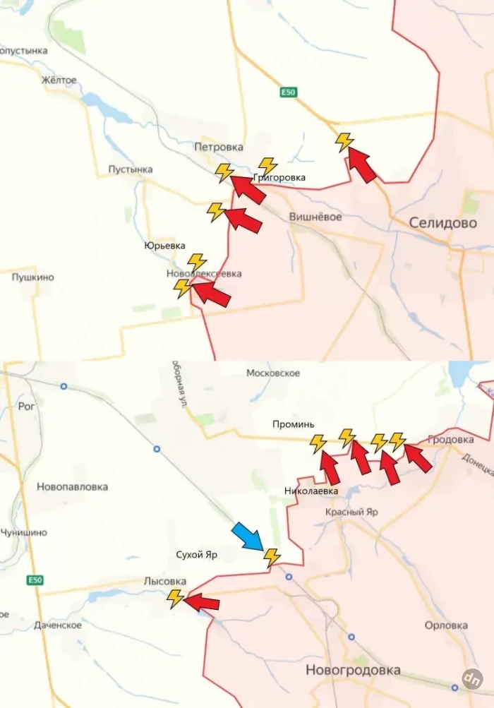 На Покровском направлении фиксируются активные боевые действия, российские силы продвинулись на 1-2 км, цель - блокировать дорогу на Покровск.