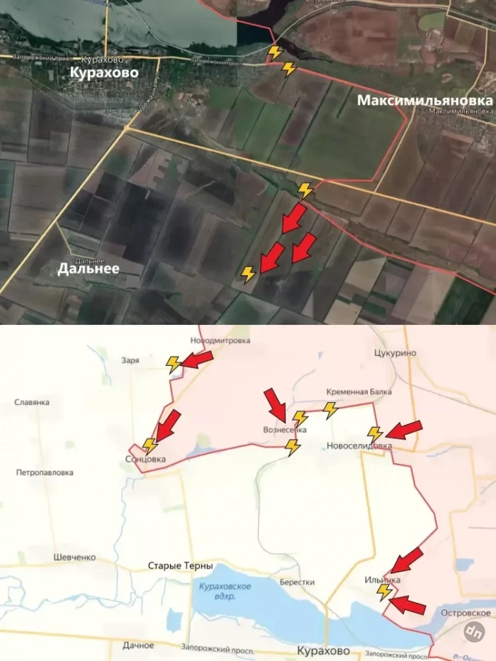 На южном участке ВС РФ существенно продвинулись к юго-востоку от Курахово. Наблюдается попытка продвижения к селу Дальнее, что южнее Курахово.