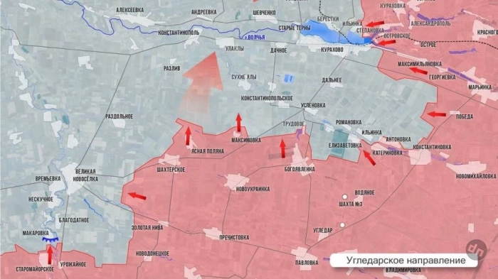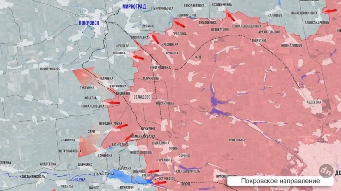 На Покровском фронте основные бои разворачиваются на подступах к Курахово. Здесь наши войска сражаются на окраинах Солнцевки, ведут бои за Ильинку и Берестки, чтобы выйти к трассе на западе от Курахово. Штурмом взяли половину Зари, сместили бои в центр. Выше по фронту, на линии Вишневое-Лысовка-Проминь ВС РФ углубляют контроль в сторону Покровска и Мирнограда: зачищают южную часть Петровки, закрепились на восточной окраине. Также сообщают, что наши зашли в Юрьевку и освободили Вознесенку. Ждем подверждения.