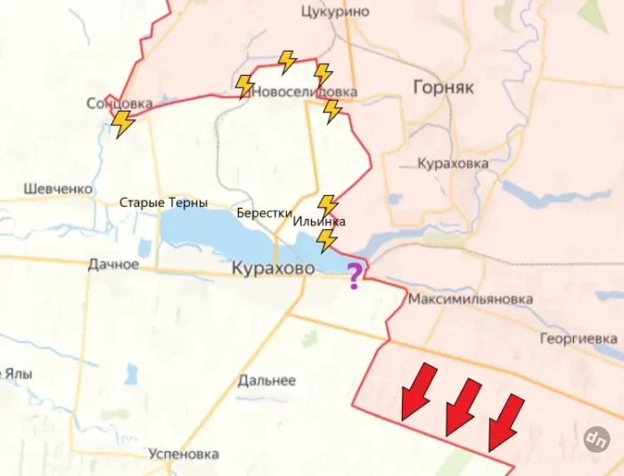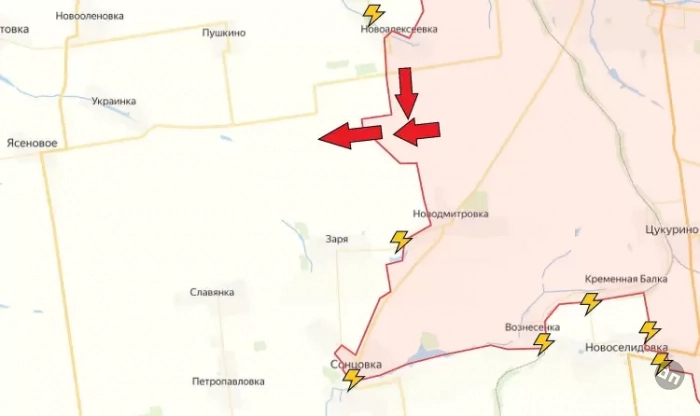 На Кураховском направлении на северном участке нашим бойцам удалось существенно продвинуться между Новоалексеевкой и Новодмитровкой в направлении Украинки. Сообщается о продвижении примерно на 3 километра на запад.
