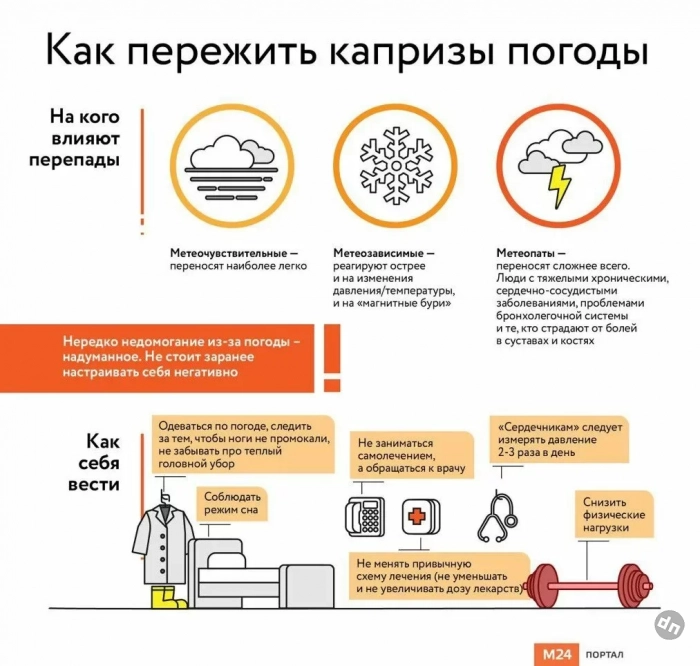 «Надо отслеживать прогнозы, и если синоптики передают магнитные бури, нужно быть максимально осторожными. В эти дни повышается риск инфарктов, инсультов, обострения ишемической болезни сердца. Риск попасть в стационар у метеозависимых людей во время магнитных бурь гораздо выше», - заключил Ахмедов.