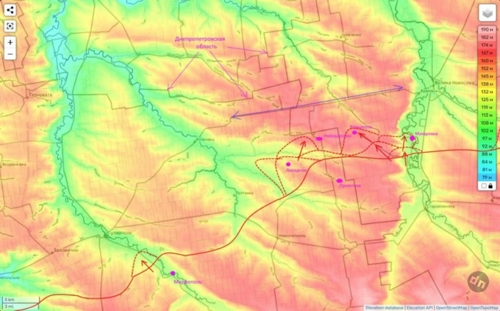 Двигаясь далее через Новодаровку по высотам в сторону Днепропетровщины, уже через несколько километров мы можем физически перерезать важнейшую рокадную дорогу Гуляйполе-Большая Новосёлка. И это не только нас выведет на границы нового для нас региона Украины, но и заметно усложнит ситуацию для БольшеНовосёловской группировки противника, отмечает Подоляка в своем Telegram-канале.