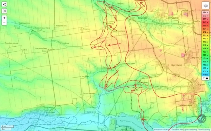 Вот и вчера пал окончательно рубеж обороны противника южнее н.п. Вознесенка-Новоселидовка. Наши части при этом не только взяли под свой окончательный контроль два этих села, но и сумели продвинуться по жд полотну немного на юг.